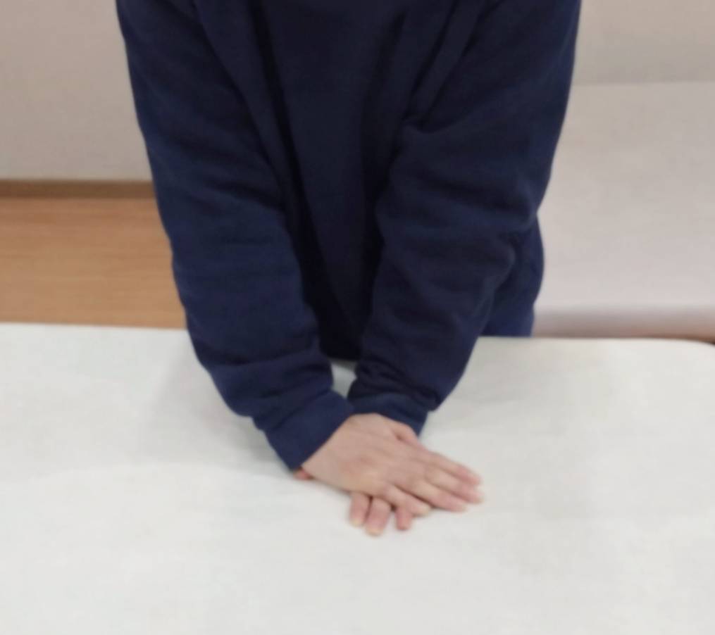 手をテーブル面に軽く預けるようにして、指をやさしく伸ばします。