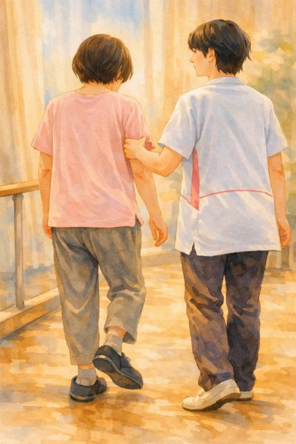 麻痺側の指には硬さがあり、本来であれば継続したケアが望ましい状態。