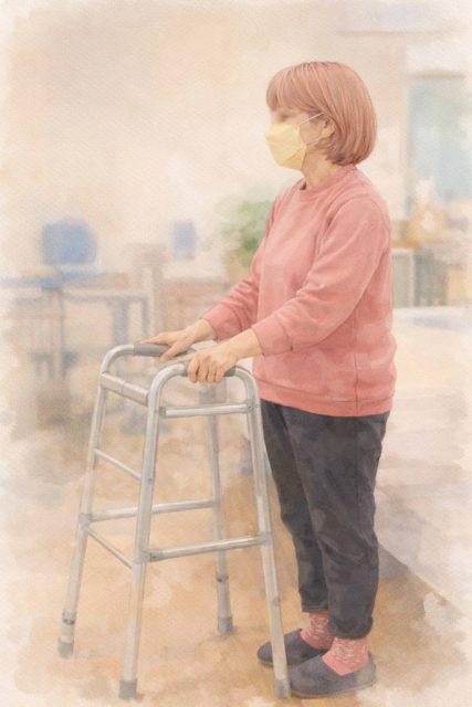 自宅内は歩行器で歩行可能です。